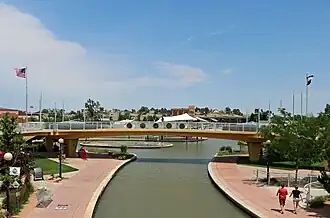 Veterans' Bridge is a $1.5 million pedestrian footbridge and monument honoring all veterans (usually those who have ties to Pueblo, Colorado) regardless of branch of military service or whether they served in peace time or war. The bridge — located on the Historic Arkansas Riverwalk of Pueblo — was formally opened and dedicated to the public on Veterans Day, November 11, 2010.[1]