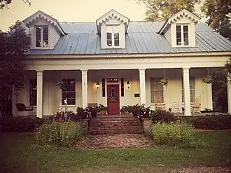 It is Greek Revival in style; its gallery along the front of the house has six Tuscan order columns.[2]