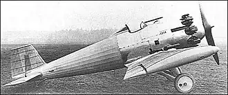 The Jockey was taken to RAF Martlesham Heath for its first flight in April 1930 and subsequent testing.[2] A rear fuselage vibration was at first thought to be aerodynamic but proved to be structural; it was cured after Barnes Wallis redesigned the internal bracing. The rudder was modified, its balance removed and a trim tab installed. Spats were added to the undercarriage and a Townend ring enclosed the engine. The same aircraft was renamed the Type 171 Jockey when the Mercury was replaced by a 530 horsepower (400 kW) supercharged Bristol Jupiter VIIF. The intention to power the Jockey with a supercharged Mercury IVS2 was never realised, after the sole Jockey was lost in a flat spin on 5 July 1932, crashing at Woodbridge, Suffolk, the pilot bailing out at 5,000 feet (1,500 m).[3] The results of the tests had been sufficiently good to encourage Vickers to refine its design into the Vickers Venom.[1]