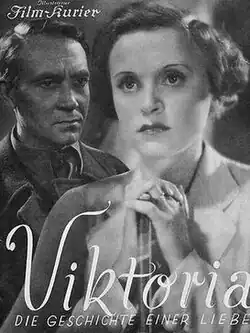 Victoria (German: Viktoria) is a 1935 German drama film directed by Carl Hoffmann and starring Luise Ullrich, Mathias Wieman and Alfred Abel.[1] It is an adaptation of Knut Hamsun's Victoria. It was made at the Johannisthal Studios of Tobis Film in Berlin. The film's sets were designed by the art director Kurt Herlth and Werner Schlichting. It was shot on location in Bergen in Norway.