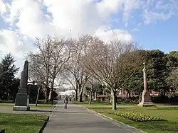 The park is also home to a number of monuments, with several of them being listed buildings.[7] These mostly consist of obelisks but there is also one in the style of a Chinese temple[7] in memorial of HMS Orlando.[8]