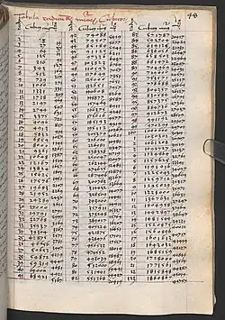 - 48r-50r: Tabula radicum et numerorum cubicorum, incompletely filled