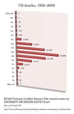 - ^ "Vietnam War U.S. Military Fatal Casualty Statistics". National Archives. August 15, 2016.