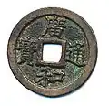 Generally cast coins produced by the Vietnamese from the reign of Lý Thái Tông and onwards were of diminutive quality compared to the Chinese variants.[21] They were often produced with inferior metallic compositions and made to be thinner and lighter than the Chinese wén due to a severe lack of copper that existed during the Lý dynasty.[22] This inspired Chinese traders to recast Chinese coins for export to Vietnam, which caused an abundance of coinage to circulate in the country, prompting the Lý government to suspend the mintage of coins for five decades.[22]