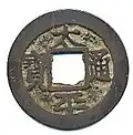 The first Vietnamese coins were cast under the rule of the Đinh dynasty (968–981) with the introduction of the Thái Bình Hưng Bảo (太平興寶) under Đinh Bộ Lĩnh.[16] Likewise the only inscription cast during the Early Lê dynasty period bore the inscription Thiên Phúc Trấn Bảo (天福鎮寶).[15][17] However, for the next two centuries coins would remain a rarity in the daily lives of the common people, as bartering would remain the dominant means of exchange under both the Đinh and Early Lê dynasties.[18]