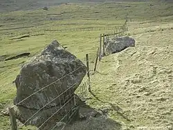 The two menhirs of Havgrímur and Leivur Øssurson in Hov. The one from Havgrímur stands upright because it fell in battle.