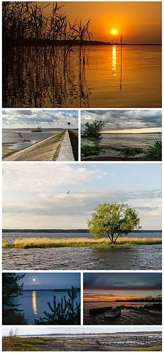 Vileyka reservoir is the largest artificial reservoir of Belarus, second in size to the largest natural lake, Narach. It has a surface area of 64.6 km2, a length of 27 km, a maximum width of 3 km, a maximum depth of 13 m, and an average volume of 238 million cubic meters.[1][2] Its catchment area is 4,120 square kilometers, mineralization of water - 280–320 mg/L.