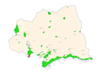 It is located west at the west part of the city and north of the city centre. It is separated by a quarry to its east from the rest of the urban area and joined with it to the north and to the south by Manuel Tiscornia street.