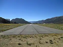 The airport is in the Andean valley of the Lonquimay River. There is mountainous terrain in all quadrants.
