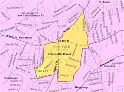 Village of the Branch (also known as Branch Village, The Branch, or simply Branch) is a village in the Town of Smithtown in Suffolk County, on Long Island, in New York, United States. It is considered part of the Greater Smithtown area, which is anchored by Smithtown. The population was 1,735 at the time of the 2020 census.