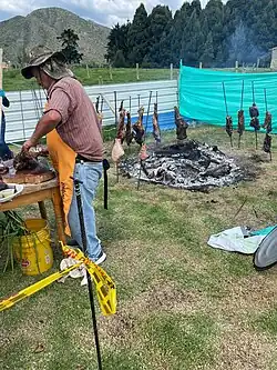 Veal roasted in wood and marinated only with salt and beer. It is served with cassava, potatoes, and plantains; optionally it is accompanied by a stew or sauce based on chili and a beer or lemonade based on panela. In the city, there is a wide variety of restaurants and grills that offer several typical dishes of the region. This dish is also known as Mamona or Ternera a la Llanera, due to the fact that it uses veal, which is slaughtered when the cow is still suckling. This is the most representative dish of the Llanos region, in such a way that it can be found in other parts of the country. The citizen who is living in Villavicencio is used to cook of meat during festivals and parties. It is common for Villavicences to eat this kind of meat in Joropodromo, at birthday parties, meetings.