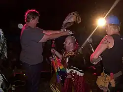The entertainment on New Year's Eve often consists of a series of shows that continue up until prize giving. These shows are often drag queen/king performances, and some of them may have adult content. Prizes are awarded for Miss/Ms "Hospitality", and to recognise the 'camp' campsites, Best Use of Technology, Best Lighting, and Best Decorations.[9] The most coveted of the campsite awards is the Best Campsite award. This is usually followed by the coronation of the new Queen, slightly before midnight, and followed by a dance party that lasts until dawn.[12]