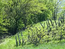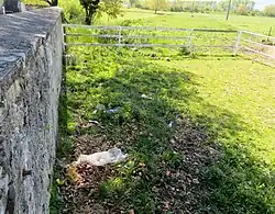 Vipava is the site of five known mass graves from the end of or after the Second World War. The Cemetery Mass Grave (Slovene: Grobišče pri pokopališču) is located next to the southwest wall of the Vipava Cemetery. It contained the remains of eight Slovene civilians murdered by the Yugoslav Army on July 14, 1945. The identities of six victims are known. The remains of six were exhumed in 1999 and reinterred in the cemetery.[4] The Military Cemetery Mass Grave (Grobišče na vojaškem pokopališču) is located by the west edge of the First World War military cemetery. It contains the remains of 15 Chetnik soldiers killed in late April or early May 1945.[5] Three additional graves contain the remains of German prisoners of war that died of typhus at the nearby prison camp in 1945. The Vipava Field Mass Grave (Grobišče Vipavsko polje) extends south of the dairy to Močilnik Creek. It is partially covered by the freeway and contains a large number of remains.[6] The Princova Baronovka Mass Grave (Grobišče Princova baronovka) lies in the southern part of the town.[7] The Bevk Street Mass Grave (Grobišče na Bevkovi ulici) is located at Bevk Streek (Bevkova ulica) no. 16. Human remains were unearthed during excavations for the building there.[8]