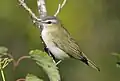 The genus Vireo was introduced in 1808 by the French ornithologist Louis Pierre Vieillot.[4] The type species was subsequently designated as the white-eyed vireo (Vireo griseus) by German ornithologist Hans Friedrich Gadow in 1883.[5][6] The word vireo was used by Latin authors for a small, green, migratory bird, probably a Eurasian golden oriole, but a European greenfinch has also been suggested.[7]