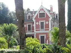 Peirano and Spinola lived between London and the "villino Pagana n.8" on the Villa Spinola estate.[13] In 1913, Ugo and Solferina Spinola commissioned the "neova villa" (Later known as the Villa del Trattato) to be built for the couple on the Villa Spinola Estate.[15][13] Styled after the Villa Serra di Comago, the Villa del Trattato was completed in 1915 however, Peirano and Spinola never lived in the property. [15][13] Initially passionate, Peirano's and Spinola's marriage was strained by class and cultural differences which saw Peirano struggle to fit in with the conservative Spinola family.[16][17] In 1919, Peirano met Stephen Courtauld in Courmayeur whilst on a skiing holiday with Spinola, and formed a romantic relationship.[4][13]