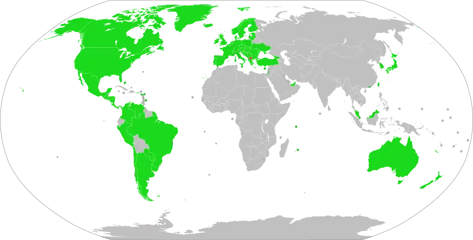 Holders of ordinary passports of the following countries and territories may enter North Macedonia without a visa for the following period:[1][2]