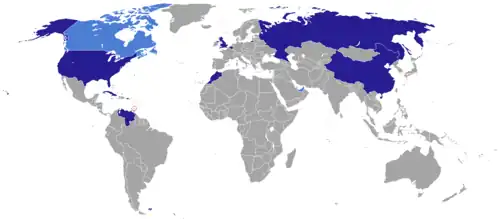 As of 26 June 2024, Brunei, Grenada, Mauritius Peru, and the Seychelles are the only countries whose citizens may travel without a visa to China, Russia, the Schengen Area, and the United Kingdom.
