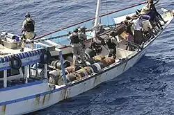 Visit, board, search, and seizure (VBSS)[1] is the term used by United States military and law enforcement agencies for maritime boarding actions and tactics. VBSS teams are designed to capture enemy vessels, combat terrorism, piracy, and smuggling, and to conduct customs, safety and other inspections.