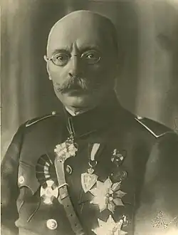 Putvinskis supported the Russian Revolution of 1905. He started smuggling weapons and providing shelter for various political activists hiding from the Tsarist police.[15] He was arrested in January 1906 and spent a few months in prisons in Šiauliai and Kaunas.[3] His cellmates included the future general Vladas Nagevičius.[16] Lacking evidence, he was released in May 1906.[17] After the death of Povilas Višinskis in 1906, Putvinskis became less involved in political matters. He focused on his farm and supported various Lithuanian societies, including the Lithuanian Art Society (chaired by his brother-in-law Antanas Žmuidzinavičius).[18] Putvinskis spent considerable effort on educating his children.[19]
