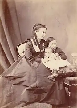 In 1884, Zubov married Sofija Bilevičiūtė from an old family of Samogitian nobles.[1] She was cousin of Józef Piłsudski, head of state of independent Poland, and sister-in-law of Stanisław Narutowicz, signatory of the Act of Independence of Lithuania.[20] They had two children: son Vladimiras (1887–1959), an agronomer, and daughter Aleksandra (1891–1961).[1] The marriage was not happy and they divorced in 1911. Sofija remained in Ginkūnai while Zubov moved to Medemrodė.[2] Zubov remarried Vera Ušakova-Belskienė (1877–1941) who divorced engineer Vaclovas Bielskis.[21] She organized courses on sewing, handicraft, and house work for local youth. She was deported to Siberia during the June deportation in 1941 and died six months later in Tenga, Altai Republic.[22]