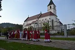 During the Croatian War of Independence, the village's was the site of a massacre by the Serb White Eagles, who killed 43 villagers, all but one of whom were ethnic Croats.[9][10] A Serb civilian who tried to protect his neighbors was the other fatality. Overnight, between 13 and 14 December 1991, the village's 550-year-old late style gothic church of the Visitation of the Blessed Virgin Mary was destroyed by explosive charges.[9] Following the withdrawal of the Serb forces and arrival of Croatian forces, crimes against the Serb civilian population who stayed behind took place, with some 40 villagers killed over the course of several days.[11]