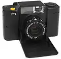 The Vito name was revived in the 1980s for a line of plastic-bodied point-and-shoot cameras (P&S) similar in appearance and functionality to the Minox 35 line, with a fold-down lens cover. The P&S Vito was built by Balda. Unlike the earlier folding Vito line, the P&S Vito used wider-than-normal lenses, branded either Color Voigtar (P&S Vito, 38 mm f/5.6) or Color Skopar (P&S Vito C and Vito CS, 38 mm f/2.8).[7]