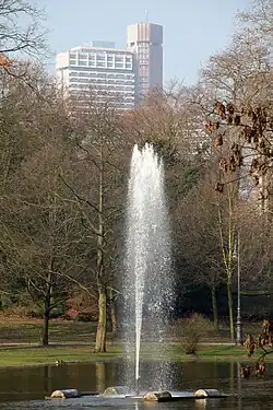 The Volksgarten contains a large pond (1.3ha, approx. 3.2 acres) with a fountain that rises up to 28 m (91 ft.).