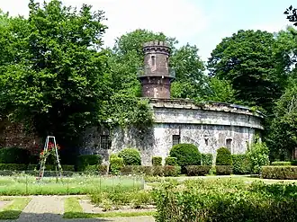 The park is well known for its beautiful rose garden with adjoining fort remains, located on its north western edge near the end of Eifelwall at Eifelstraße, behind the stacked railway bridges.
