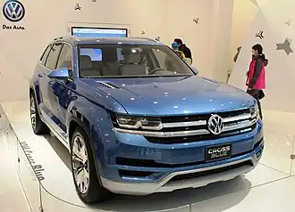 The Volkswagen CrossBlue is a concept diesel plug-in-hybrid mid size crossover SUV, intended to sit in the range of SUVs by Volkswagen, below the Volkswagen Touareg. The concept version of the car has six seats, but the production version that will be based on it will have a traditional seven seat layout.[3]