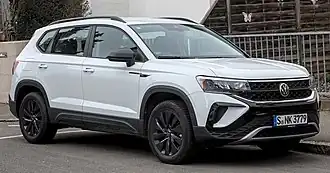 The Volkswagen Taos is a compact crossover SUV marketed by Volkswagen. It was first released in October 2018 as the Volkswagen Tharu in China, while the Taos was released in October 2020 as a restyled version of the Tharu for the North American, South American, and Russian markets. In the brand's lineup, the vehicle is positioned below the Tiguan, and in South America and China above the T-Cross.[9] It is not marketed in core European market.