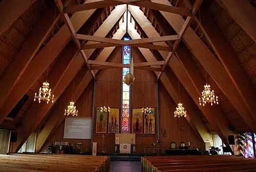 Volsdalen Church (Norwegian: Volsdalen kyrkje) is a parish church of the Church of Norway in Ålesund Municipality in Møre og Romsdal county, Norway. It is located on the south side of the island of Nørvøya in the town of Ålesund. It is one of the three churches for Ålesund and Volsdalen parish which is part of the Nordre Sunnmøre prosti (deanery) in the Diocese of Møre. The red, wooden church was built in a rectangular design in 1974 using plans drawn up by the architect Leif Olav Moen. The church seats about 500 people.[1][2]