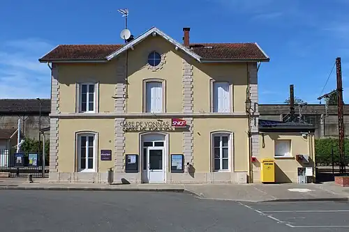 Vonnas station (French: Gare de Vonnas) is a French railway station serving the commune of Vonnas, Ain department in the Auvergne-Rhône-Alpes region. It is located at kilometric point (KP) 16.950 on the Mâcon-Ambérieu railway.[1]