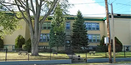 The Vrooman Avenue School is a historic school building located at 400 Vrooman Avenue in Amsterdam, Montgomery County, New York. It was built in 1918 and is a two-story, H-shaped, yellow brick institutional building. It features a slight projecting central pavilion at the main entrance and an elaborate stone carving depicting a child's head and a swag draped around an open book. A gymnasium was added to the main structure in 1925. The school closed in June 1975,[2] and is now an apartment building.