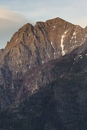 Vulture Peak (9,642 feet (2,939 m)) is located in the Livingston Range, Glacier National Park in the U.S. state of Montana.[3] The Vulture Glacier is located on the southern flanks of the mountain, while the Two Ocean Glacier is immediately to the north. Vulture Peak is the thirteenth highest summit in Glacier National Park.