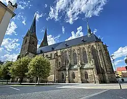 The Church of Saint Lawrence is a large cathedral from the second half of the 13th century. It was reconstructed after the fire in the 16th century, and the near Renaissance belfry was erected in 1585. The current appearance of the church is result of purist restoration from the late 19th century. Nowadays the premises of the belfry are used by the Town Gallery.[3]