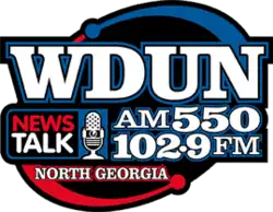 WDUN (550 kHz), known as "North Georgia's Newstalk", is a news/talk formatted AM radio station licensed to the city Gainesville, Georgia, in the Atlanta, Georgia radio market. WDUN is licensed as a Class B AM broadcast facility by the Federal Communications Commission operating with 10,000 watts of power during the daytime using a non-directional antenna signal pattern, and 2,500 watts during nighttime using a directional antenna pattern. The station is currently owned by JWJ Properties, Inc., doing business as Jacobs Media Corporation, which also operates WDUN-FM in Clarkesville, Georgia.[1][2][3]