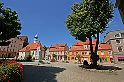 - Market square (renovated 1997–1999). A place where a weekly market took place in the past. In the years 1731-1853 its center was occupied by the Baroque town hall.