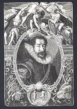 Johannes Matthaeus Wacker von Wackenfels (1550–1619) was an active diplomat, scholar and writer, with an avid interest in history and philosophy. A follower of Neostoicism, he sought to resolve the doubts he still had about his conversion to Catholicism, according to STUDIA RUDOLPHINA - Bulletin of the Research Center for Visual Arts and Culture in the Age of Rudolf II. He was born in Konstanz (Constance) in 1550 in a Lutheran Protestant family and studied in Strasbourg, Geneva and Padua. He was supported and promoted by Johannes Crato von Krafftheim, who put his way into the circle of Renaissance humanism in Northern Europe in Breslau (Wrocław). On Crato's and Hubert Languet's recommendation, he became tutor in noble houses. In 1574 he traveled from Vienna to Italy, where he met Jakob Monau and Fabier Ien de Dohna. In 1575 he received his doctorate in Padua. As a steward, he accompanied the son of Nicholas of Rhediger on the Grand Tour (peregrinatio Academica). In 1576 he returned to Breslau and became the confidant of bishop Andreas von Jerin. In 1591 Wackenfels was Chancellor of the Upper Silesian provincial team. In 1583 he married Sophie Poley in Dresden (1563-92), a sister of Wrocław businessman and gentleman on animal garden Christoph Poley.[1] In 1592 Wackenfels converted to the Catholic faith and in 1594, he was in the Ennoblement. In 1595 he married his second wife Catherine of Troilo, being then Franz Troilo's brother-in-law, a sister of his first wife and second daughter of Johann Franz Troilo, and allied himself with one of the most influential families in Wrocław. In the spring of the same year, he made an invitation to his friend Valens Acidalius to go to Neisse. In 1597, he was appointed to the Aulic Council, where he served until 1612, from 1608 as a trainee. In 1611 he has devoted his friend Johannes Kepler, who dedicated to him his "Strena seu nive sexangula" (From hexagonal snow; see: Kepler conjecture) (1611).