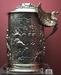 Silver tankard, once called Dutch and late 17th-century, now "Berlin, 1826–1875 (?)";[73] WB.130