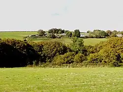 Sir John Wadham, Justice of the Common Pleas (1389–1398) (said by Pole, apparently in error, to have been Justice of the King's Bench), MP for Exeter in 1399 and for Devon in 1401.[21] He was one of Prince's Worthies of Devon.[22] Although Pole (followed by Prince (died 1723))[23] stated him to be the son of Sir John Wadham above, his modern History of Parliament biographer,[21] perhaps unaware of Pole as Prince's source, suggested he was the son of Gilbert Wadham, who in 1383 quitclaimed to him a rent in Wadham, which deed was witnessed by Sir John's close friend Sir William Hankford (c. 1350 – 1423) of Annery in Devon, Chief Justice of the King's Bench from 1413 until 1423. He acquired much land in Devon, Somerset, Dorset and Gloucestershire, which were valued at £82 per annum in an incomplete survey of 1412 and valued at about £115 in his inquisition post mortem in 1412. His Devon landholdings included the manors of Silverton and half the manor of Harberton (both purchased, in 1386 and 1390 respectively, from Cecily Turberville, sister and heiress of John de Beauchamp, 3rd Baron Beauchamp of Hatch) (1329–1361)) and Lustleigh and he acquired over 300 acres of land in Branscombe and elsewhere. Silverton, like Edge, descended to the Wyndham family and Silverton Park (alias Egremont House), a large neo-Classical mansion, was built there in 1839–45 by George Wyndham, 4th Earl of Egremont (1786–1845) and demolished in 1901. His landholdings in Somerset were even more extensive than those in Devon and mostly consisted of properties forfeited by Sir John Cary, Chief Baron of the Exchequer. These lands included Hardington Mandeville, a moiety of Chilton Cantelo, and premises in Trent (now in Dorset) he purchased jointly with Hankford in 1389. These large landholdings in Somerset appear to have moved his principal interest away from Devon and the manor of Edge, and towards the end of his life he made his principal residence at Merryfield, Ilton, near Ilminster, Somerset, which he had purchased from Cecily Turberville.[24] At Merryfield he built a substantial fortified manor house, demolished after 1618, of which only the rectangular moat survives today in the middle of agricultural land south of RAF Merryfield aerodrome.[25] He married Joan Wrothesley.