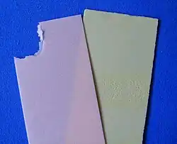 Wafer paper is used as an edible wrapper for sticky confectionery like nougat.[3][4] Some candies are made largely out of wafer paper, such as flying saucers.