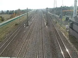 The Waghäusel Saalbach–Graben-Neudorf railway is a 7.94 km long[3] railway north of Karlsruhe, Germany. It connects the Mannheim–Stuttgart high-speed railway with the Rhine Railway and is used by scheduled trains between Mannheim and Karlsruhe.