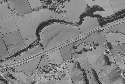 Aerial photograph of Waiongona railway station, taken on 14 August 1950.