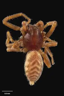 - ^ Forster, R. R.; Platnick, N. I. (1985). "A review of the austral spider family Orsolobidae (Arachnida, Araneae), with notes on the superfamily Dysderoidea". Bulletin of the American Museum of Natural History. 181: 1–230.