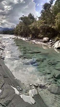 ![]() The lower reaches of the Waitaha River | |