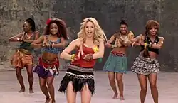 The video chiefly focuses on Shakira and a crowd composed of numerous dancers and children dancing together. Freshlyground appear during their verse, with lead singer Zolani Mahola and violinist Kyla-Rose Smith "front and center". Towards the end of the video, various child dancers perform solo dance routines.[77] The video interpolates archival footage of past football matches, including the infamous scene of Italian footballer Roberto Baggio missing the decisive penalty in the shootout of the 1994 FIFA World Cup Final against Brazil, and the 2006 FIFA World Cup Final at the beginning of the video.[82] It also features appearances by footballers Dani Alves, Gerard Piqué, Carlos Kameni, Lionel Messi and Rafael Marquez.[77]