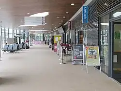 Four years later, Westgate Station was rebuilt at the northern end of the platforms and the former overflow car park.[1] Key aims of the project were nearly doubling station's retail facilities, an improved forecourt area, station management centre, staff offices, a customer information point, a first class waiting room and standard class waiting facilities and the installation of new passenger information technologies and automated ticket barriers to reduce fare evasion.[1] Better pedestrian access to the multi-storey car park and taxi ranks were provided.[1]