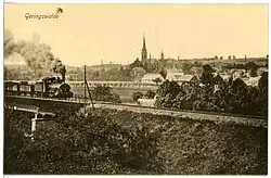 First attempts to have a railway built between Waldheim and Rochlitz were made in the 1870s. The towns of Geringswalde and Hartha had a particular interest in it, as they expected advantages for their further economic development. A first petition to the Saxon parliament in 1871 was rejected by the First Chamber. Another petition in 1872, supported by Geringswalde, Hartha, Rochlitz, and Waldheim unterstützt wurde, was also rejected, and further attempts in the following years remained without success.[3] Instead of the Waldheim–Rochlitz line, a railway from Schweikershain to Colditz via Geringswalde and Lastau and a branch line connecting Hartha to Waldheim were discussed in the 1870s.[4]