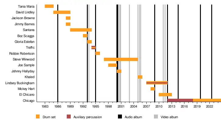 Reyes has globally toured and/or recorded with countless international acts, including the following:[4]