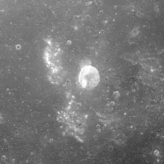 An unusual and apparently unnamed elongate crater about 2 km x 5 km in size and about 44 km east of Wallach was the subject of a landmark tracking exercise on Apollo 8 in December 1968.[2] The feature was photographed repeatedly from its emergence on the horizon to after the Command Module had passed directly over it.